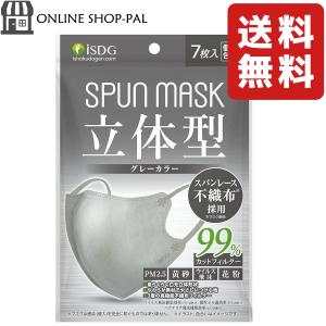 ISDG 医食同源ドットコム 立体型スパンレース不織布カラーマスク SPUN MASK (スパンマスク) 個包装 7枚入り グレー