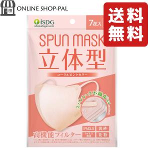 iSDG 医食同源ドットコム 立体型スパンレース不織布カラーマスク SPUN MASK (スパンマスク) 個包装 7枚入り コーラルピンク