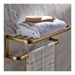 タオルハンガー タオル掛け 壁掛け式 バスルームタオルラック、ゴールド固定バスタオルホルダー、アンティークバスシェルフタオルレール、トータル真鍮の壁に取