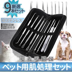 ペット用 肌 処理 手入れ ケア 9本 セット ステンレス 専用 収納 ケース 付き ペット 犬 猫 いぬ ネコ 皮膚 すっきり スッキリ ピンセット 毛抜き PEHADA9