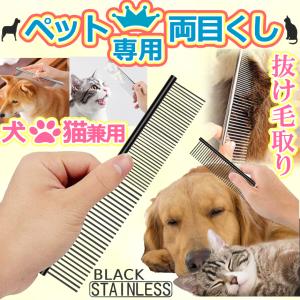 ペット コーム 両目 くし ブラック 細目 粗目 抜け毛 毛 ほぐす 犬 猫 イヌ ネコ グルーミング トリミング ステンレス ブラシ 手入れ ペット用品 NECORM-BK