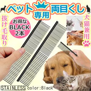 ペット コーム 両目 くし ブラック 2本 セット 細目 粗目 抜け毛 毛 ほぐす 犬 猫 グルーミング トリミング ステンレス ブラシ 手入れ ペット用品 2-NECORM-BK