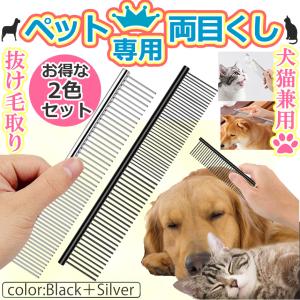 ペット コーム 両目 くし ブラック シルバー 2色 セット 細目 粗目 抜け毛 毛 ほぐす 犬 猫 トリミング ステンレス ブラシ 手入れ ペット用品 NECORM-BKSV