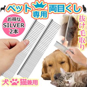 ペット コーム 両目 くし シルバー 2本 セット 細目 粗目 抜け毛 毛 ほぐす 犬 猫 グルーミング トリミング ステンレス ブラシ 手入れ ペット用品 2-NECORM-SV