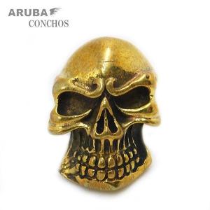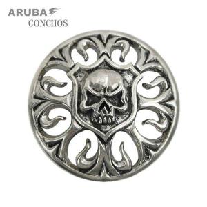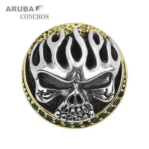 コンチョ 925 真鍮 スカル ファイアー 骸骨 ドクロ スカルファイアー ファイヤーコンチョ ボタン 革財布 ねじ レザークラフト (cc3924-i20)