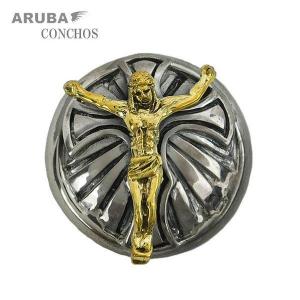コンチョ 925 真鍮 イエスキリスト キリスト クロス 十字架 ブラスねじ 手芸 レザークラフト 交換 (0251t33-d18)