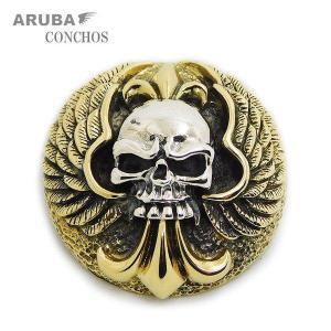 コンチョ 925 真鍮 スカル ドクロ ウィング インディアン インディアンジュエリー ブラス スペード ゴールド レザー (cc2256-b19)