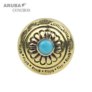 コンチョ 真鍮 ターコイズ ネイティブ アメリカン 天然石 ブラス ネジ 式 ボタン 飾り パーツ ロングウォレット レザークラフト aruba アルバ cc4250-j4