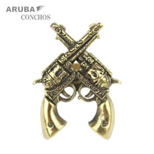 コンチョ 真鍮 リボルバー 銃 ピストル カウボーイ ブラス ネジ ボタン 飾り コンチョボタン レザークラフト ハンドメイド アルバ aruba co4248