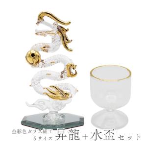 昇龍 ガラス細工 水盃 セット 龍の置物 Sサイズ 風水 縁起物 おしゃれ 玄関 竜 鏡 開運グッズ ドラゴン インテリア プレゼント