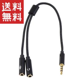 マイク+ヘッドホン用 変換ケーブル (3極メス×2 → 4極オス) 高耐久ナイロン 3.5mmステレオミニプラグ