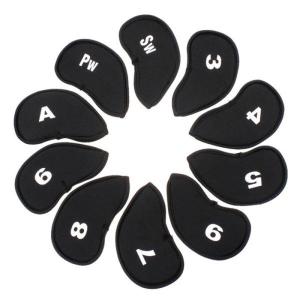 送料240円 ゴルフ アイアンカバー ヘッドカバー セット 番手付き 10セット 黒色 ブラック ヘッドカバー クラブ シンプル おしゃれ