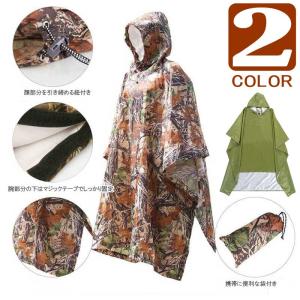 ポンチョ ミリタリー レインコート キャンプ アウトドア 日除け レジャーシート多機能 携帯用 袋 バッグ付き 梅雨対策 迷彩柄 カーキ色 2色 送料無料