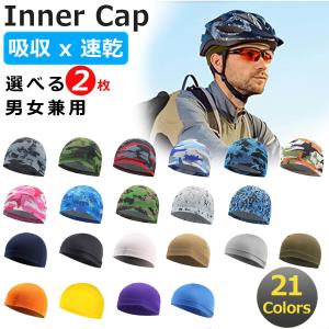 【全21色】 (選べる2カラー) しなやかな着心地 サイクル 速乾/吸収性抜群 インナーキャップ スカルキャップ ヘルメット サイクリング ロードバイク ランニング