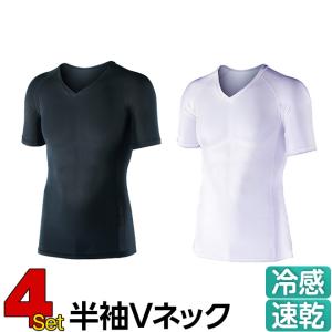 シャツ 4枚セット インナー メンズ 半袖 Vネック 接触冷感 吸汗速乾 UVカット