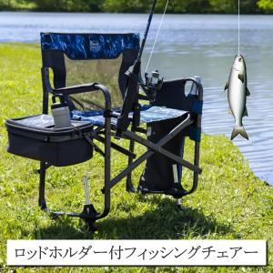 ロッドホルダー付 フィッシングチェアー 釣り用椅子 竿置き 折り畳み チェア 椅子 釣り具収納ポケット 保冷ポケット 耐荷重136kg つり チェアー