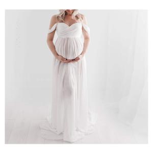 女性マキシマタニティドレスフォトシュートの小道具のためにShoulderlessマタニティドレスのために写真のセクシーな前分割妊娠ドレス (Color : White Maternity