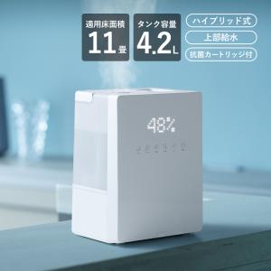 加湿器 ハイブリッド式 上部吸水式 ヒーター加湿 超音波 大容量 4L 11畳 木目調 アロマ対応 抗菌 ウッドモイスト スリーアップ HB-T2581