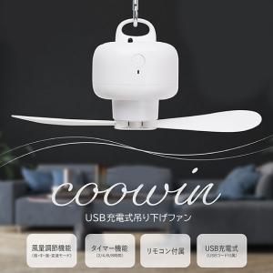 USB 充電式 吊り下げファン クーウィン 扇風機 カラビナ 吊り下げ USBファン 室内干し アウトドア USB充電 サーキュレーター おしゃれ 風量調節 リモコンつき