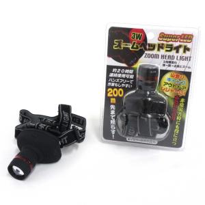 LED ライト 懐中電灯 3W ズーム ヘッドライト ヘッドランプ アウトドア 防犯 防災 302-247