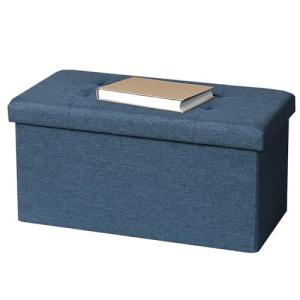 不二貿易(Fujiboeki) 収納ベンチ 収納ボックス 幅60×奥行30×高さ30cm ネイビー オットマン 耐荷重80kg 折りたたみ ボッ