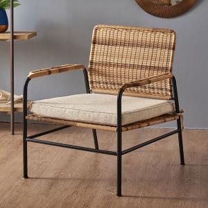 チェア パーソナル リビング ラタン風 ベージュ 座面高 30cm シンプル 家具 インテリア アーム 1人 掛け 1P 用 リゾート おしゃれ 北欧 西海岸風 91585