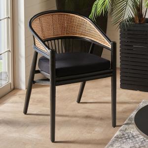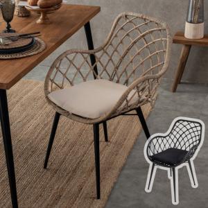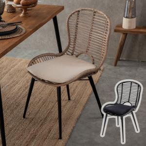アームチェア 肘付き イス 2脚セット ラタン 籐 シンプル アイアン 一人掛け 背もたれ付き ブラック ベージュ アジアン家具 モダン set-13850-mt