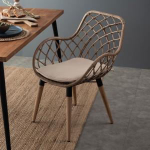チェア 肘なし イス ラタン 籐 シンプル 木製脚 一人掛け 背もたれ付き クッション付き 格子 ベージュ アジアン家具 モダン 13860-wd-lgv