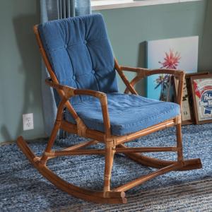 ロッキングチェア チェア 椅子 肘つき 木製 揺れる リラックス デニム ブルー クッション付き ヴィンテージ 91362