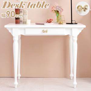 デスク 机 幅90cm 収納 引出し コンパクト 木製 ホワイト 白 おしゃれ 天然木 アンティーク 北欧 フレンチカントリー ホワイト 在宅 テレワーク 敬老の日
