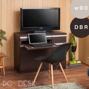 PCデスク 幅約90 ダークブラウン 木製 おしゃれ 日本製 完成品 キャビネットデスク フルスライド棚 パソコンデスク 収納 リビング ダイニング 敬老の日