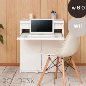 PCデスク 幅約60 ホワイト 木製 おしゃれ 日本製 完成品 キャビネットデスク フルスライド棚 パソコンデスク 収納 リビング ダイニング 敬老の日