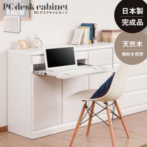 PCデスク 幅約90 ホワイト 木製 おしゃれ 日本製 完成品 キャビネットデスク フルスライド棚 パソコンデスク 収納 リビング ダイニング 天然木 敬老の日