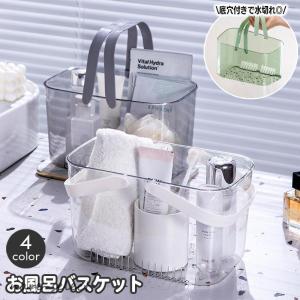 お風呂バスケット 小物入れ クリア 透明 手提げ ハンドル 持ち手付き 収納かご ボックス 水切り 底穴 ミニサイズ おしゃれ 化粧品 洗面用品 浴室