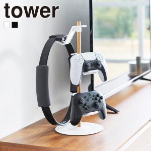 山崎実業 tower 置台が動くゲームコントローラー収納ラック タワー PS5 PS4 switch プロコン ジョイコン ヘッドホン ヘッドフォン