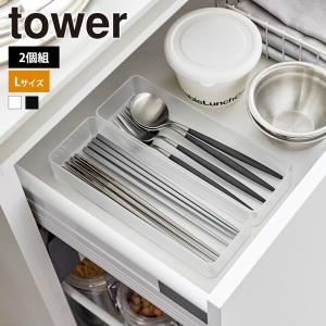 山崎実業 tower 縦横重ねられる引き出し整理収納ケース タワー L 2個組 クリアケース トレー スタッキング カトラリー 文房具 コスメ
