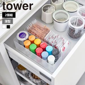 山崎実業 tower 縦横重ねられる引き出し整理収納ケース タワー 深型 2個組 クリアケース トレー スタッキング カトラリー 文房具 コスメ