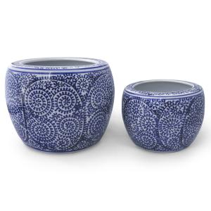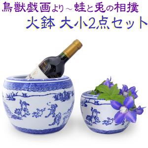 火鉢 大小 2点セット 水鉢 ミニ火鉢 鳥獣戯画 陶器(説明書付き 兎 蛙)金魚鉢 メダカ鉢 睡蓮鉢 鉢カバー 花器 ワインクーラー 骨董風