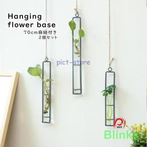 麻紐付き フラワーベース 花瓶 2個セット 一輪挿し ハンギング 吊り下げ アイアン ガラス