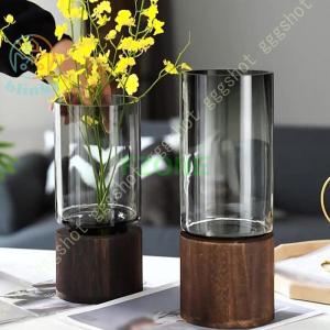 テラリウム ガラスポット 植木鉢 木製スタンド付 フラワーベース プランター ハイドロカルチャー フラワーボウル 花器 造花グリーン 植物観葉植物 ガーデニング