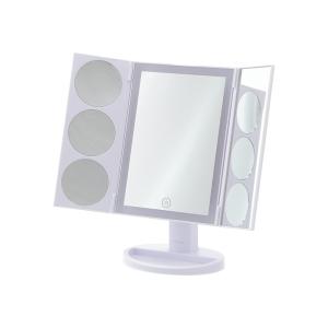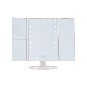 不二貿易 LED 三面 卓上ミラー ホワイト 三面鏡 拡大鏡 LEDライト 女優ミラー 4953980866868