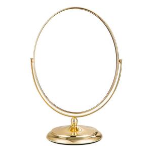 バニティミラー、デスクトップダブルクロームラウンド卓上ミラーマルチアングル回転金属(ゴールド)