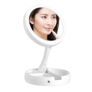化粧鏡 IBESTARS 化粧ミラー 女優ミラー LED両面鏡 鏡 10倍拡大鏡付き 折り畳み式 卓上 テーブルランプUSB/電池給電 180°回転