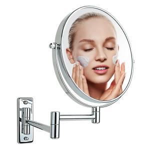 両面化粧鏡 壁付け拡大鏡 8インチ 3倍拡大鏡 両面鏡 折りたたみアーム付き 360°回転式拡大鏡 伸縮可能 壁付けミラー 洋式アームミラー メイク道具 化粧 髭剃り