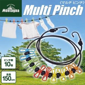 洗濯紐 物干しロープ ピンチ10個 収納袋付 洗濯ロープ 紐 150cm 引っ掛けフック付 部屋干し 室内干し キャンプ 防災グッズ 紐 キャンプ /60N◇ NEWマルチピンチ