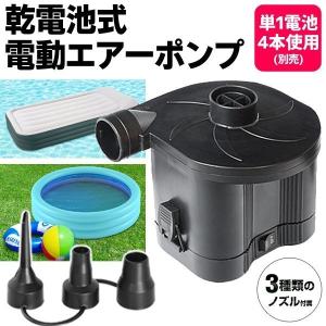 空気入れ 電動 エアーポンプ 3種類ノズル付 乾電池式 注入 注入 ビニールプール 浮き輪 エアマット アウトドア //60N◇ エアーポンプ 電池式
