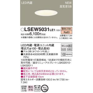 【法人様限定】パナソニック LSEW5031LE1 LED軒下用ダウンライト 埋込穴φ100 防湿・防雨型 電球色