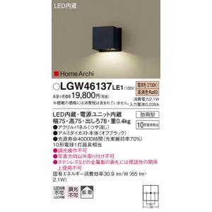 【法人様限定】パナソニック LGW46137LE1 LED表札灯 電球色 壁直付型 拡散タイプ 防雨型 HomeArchi パネル付型