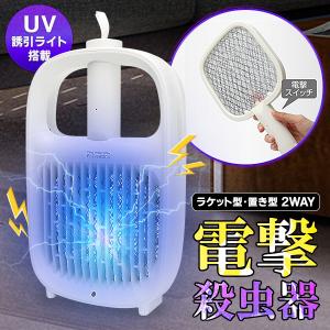 送料無料- 電撃殺虫器 殺虫灯 殺虫器 UV 誘引ライト ラケット型 置き型 コバエ 蚊 殺虫 こばえ ハエ取り 静音 室内 インセクトキラー ◇ エレショックM