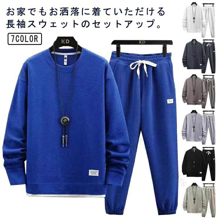 飽きのこないシンプルなデザインがポイント ♪12色展開 セットアップ メンズ 大きいサイズ 無地 プルオーバー パーカー スウェットパンツ スエット スウェットパンツ 上下セット 長袖 ップス 重ね着風 スポーツウェア 春秋冬 イージーパンツ ジャージ パジャマ 部屋着 ルーム